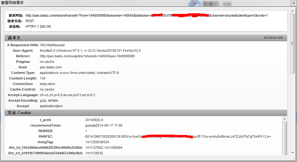 提交URL:http://pan.baidu.com/share/transfer?from=UK号&shareid=shareid号&bdstoken=bdstoken(没有的话无法执行)&channel=chunlei&clienttype=5&web=1