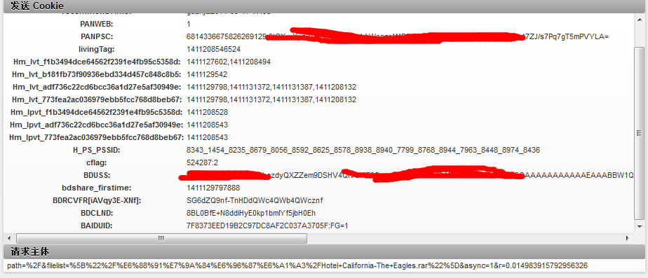 postdata['filelist']='["/我的文档/Hotel California-The Eagles.rar"]';