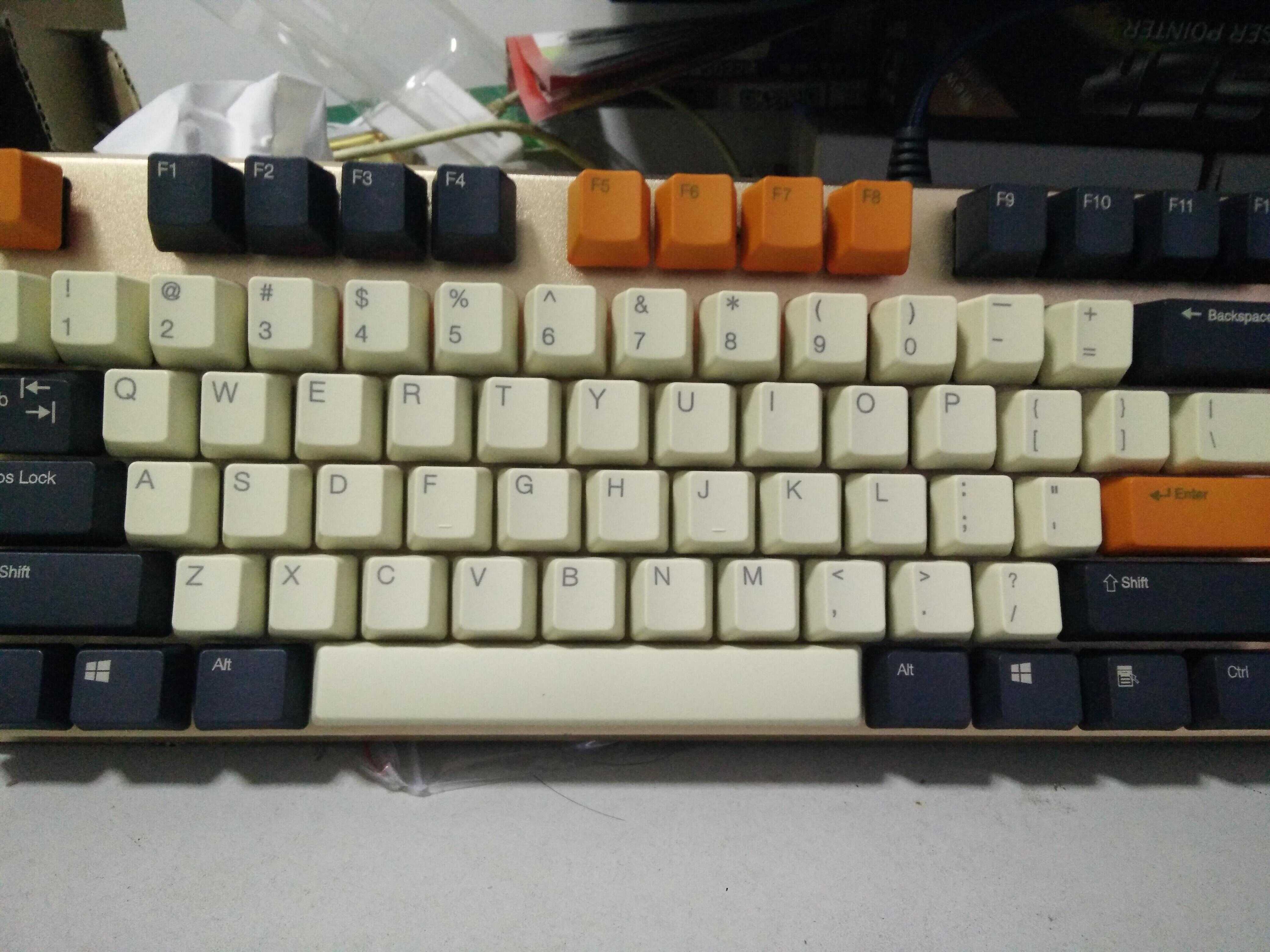 成本:键盘50(这个好像贵了),全新拆机樱桃红轴104颗90,PBT大碳配色键帽60,合计200。